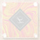 Add a splash of artistic randomness to the kitchen or dining experience with this glass coaster, which features liquified marble with hypnotic, chaotic streaks of yellow and red. Personalise with your monogram or initial(s).