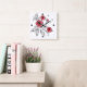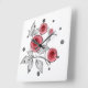 Abstract modern roses flowers red grey floral whit square wall clock
