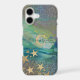 Trendy and modern personalized iPhone case design featuring an abstract glittery liquid paint background with faux gold glittery stars and your custom name and initial. The text is fully customizable. To change it use the Personalize option. For more changes, such as changes to the font, font color or text layout, use the Edit design tool option.