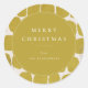 Abstract modish shapes, personalised holiday sticker. Festive shades of rustic yellow and faux gold shapes with template text lines for your holiday greeting and name.