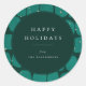 Abstract modish shapes, personalised holiday sticker. Festive shades of green and faux gold specs with template text lines for your holiday greeting and name.