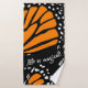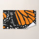 Abstract Monarch Butterfly Wing Life is magical! Bath Towel Set in vibrant orange, black, and white hues to embrace the magic of life. This set allows you to customise the colour of the towels, replacing the larger orange wing areas with your chosen colour, while black and irregular white dots frame the wing design. Personalise the text to create a unique addition to your bathroom decor or a thoughtful housewarming gift for your best friend. If you have any custom design requests or need assistance with customisation, please reach out to us at info@KBMD3signs.com.