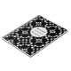 Personisable notebook with spiral binding made stylish with a monochrome pattern of white and grey dots and oval shapes on black background. The easy to use text template makes is possible to personalise all rows of text as well as the circle around the text.