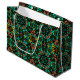 Abstract mosaic kaleidoscopic floral flowers black large gift bag