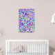 An abstract mottled design in a palette featuring popular colours of the 1980s.