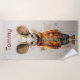 The fabric is soft and fluffy, feels great on the skin. The quality seems to be very good, I have not yet tested how absorbent the fabric is. The colors were vivid, the lines of the design clear, all in all, a great result.