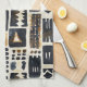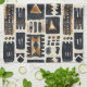 Hand-painted African mud cloth design featuring bold geometric shapes in earthy tones of black, brown, and cream.