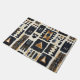 Hand-painted African mud cloth design featuring bold geometric shapes in earthy tones of black, brown, and cream.