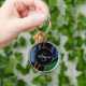 This key chain features a black circle banner with your monogram in lighter blue at the centre, and your name in silver script over it. The banner is placed on an elegant multi colour agate style background with gold faux glitter threaded through out. Colours used include tones of blue, green, and cinnamon brown with a touch of purple at one edge. Beautiful!