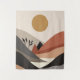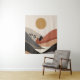 Abstract landscape boho wall art .Modern boho nature landscape featuring the sun, sky, river, and mountains