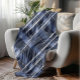 Abstract Navy Blue Plaid Chequered Pattern Fleece Blanket