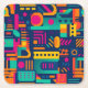 Abstract neon colours and geometric bohemian shape square paper coaster
