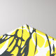 Organic shapes reminiscent of a nest in neutral greys with a pop of yellow.