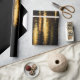 Photo of sparkly glistening night lights sea reflection in black and gold shiny colours.