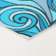 Bold abstract illustration of ocean waves in various blues with black outline, seamless repeat pattern