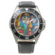 My husband loves the watch, he likes the dial, the graphics, the band, and it keeps perfect time.