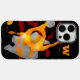 Swirls of golden colour with a splash of red on black abstract artwork and just waiting for your initial to make this into a personalised and unique case.