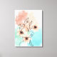 Abstract One Line Face Art – Leaf Horns, Pink Flower Lips & Watercolor Stains Canvas Print
