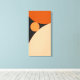 An abstract geometric modern art design of circles in orange and peach colours with a black background.