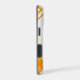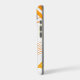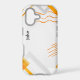 Modern art on a mobile phone case. Abstract and orange on white, contemporary, with some elements of Bauhaus.