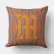 Abstract Orange Grey Pattern Pillow with custom monogram.