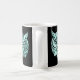 The refined palette of white and silver with deep cyan accents and minimal soft gold highlights stands out beautifully on dark backgrounds, making this mug both elegant and visually striking for everyday use.