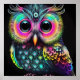 Abstract Owl in bright neon colors Poster