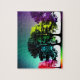 This beautiful abstract is of a small silhouette forest made up of otherworldly vibrant colours. The sky is aqua and purple.