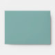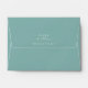 A paint strokes watercolor, in sparkling shades of sea glass green with splashes of soft blush pink, accents most pieces of this beautiful wedding suite. The coordinating envelope shown here features a glitter interior and solid sage green exterior with a template to easily add your own names and address on the back flap. Search ID886 to see other pieces and colour choices for this set.