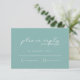 A paint strokes watercolor, in sparkling shades of sea glass green with splashes of soft blush pink, accents the pieces of this beautiful wedding suite. The wedding 'RSVP' card shown here also features elegant handwritten calligraphy and plenty of space for your text. Easily add your own names, wedding date and menu selections using the provided template. Search ID886 to see other pieces and color choices for this set.