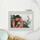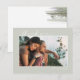 A paint strokes watercolor in sparkling shades of olive green with splashes of lavender accents the pieces of this beautiful wedding suite. The wedding 'Thank You' card shown here also features your own photo framed on a sage green background and a striking layout that makes it stand out from the crowd. Add your photo, personal thank you message, names and wedding date using the provided template. Search ID886 to see other colour choices and coordinating pieces for this unique wedding collection.