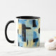 Abstract painted composition in blue and yellow mug