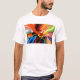 The T-shirt is great quality! The cotton is thick and does not lose its shape. I bought this as a gift last Christmas and since then it has been washed many times and I haven't seen any stretching or tears. The size fits perfectly. The printing is excellent. The colours and the design were exactly as shown in the picture. One year after, it hasn't faded due to washing.