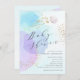 Modern abstract boy baby shower design featuring a watercolor background in soft blue and decorated with purple & blue pastel circles and gold sprinkles. Visit our shop to view our collection of matching products.