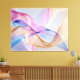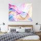 The image features abstract, flowing ribbons of colour against a soft, light background. The ribbons are translucent and appear to be made of a delicate material, possibly fabric or light. Colours include shades of pink, purple, blue, and beige, creating a gentle and ethereal effect. The ribbons twist and curve, giving a sense of movement and fluidity.