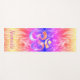 This artsy, abstract painting shades of gold, red, pink, purple splattered through out the mat with a matching pastel shaded OM symbol as the centerpiece. Artsy cool vibe with vibrant energy to get you going with your yoga practice. Can be personalised on the bottom with name, logo or text or kept as is with the namaste