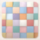This abstract image is a visually striking pattern of a wall of square tiles. The squares are arranged in a regular grid and feature a soft, calming pastel color palette that includes shades of pink, orange, and green. The subtle 3D effect of the tiles and their textured, matte finish create a clean and modern background design.