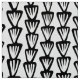 An abstract pattern made up of columns of hand drawn irregular cone like shapes with ray like decoration creating a flower like appearance with a nice inky spontaneous look. This design uses a vector graphic so the pattern size can be increased or decreased. The background colour can also be customised.