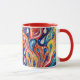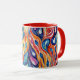 This is a Habatour Creations mug, decorated with an authentic modern abstract digital pattern design, inspired by fluid art