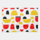 An original seamless abstract pattern made up of bold hand drawn half oval and semi circular shapes in red, amber and black on a white/transparent background.