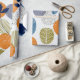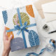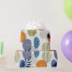 Abstract pattern with colourful leaves and shapes in a seamless pattern. White background. Modern chic design.