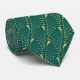 This is a beautiful neck tie that is appropriate for office or evening attire, and even weddings. It features an interesting vector pattern using gold line art that resembles an abstract peacock feather. The pattern is placed diagonally on a teal green background. Both the front and the back of the tie have the same pattern.