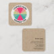 A business card template with a 12 segmented circle motif in a palette of 5 colours. The symbol is placed in a white circle with curved text company name and business type with other contact details on the other side. Ready to be customised, suitable for a variety of businesses/uses.