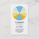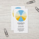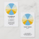 A clear stylish and attractive business card template with a 12 segmented circle motif in a palette of 5 colours. Main company details on the front, with name and personal contact on the back, with the same motif and style.