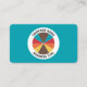 A business card template with a 12 segmented circle motif in a palette of 5 colours. The symbol is placed in a white circle with curved text company name and business type. Name and other contact details on the reverse using the white circle panel without the symbol with the name and job title placed inside and arranged to the left side.