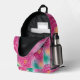 Pretty and colourful pink circles with a textured look on a background of light pink with aqua green and yellow spheres, is printed on the front, sides, and top of backpacks. Thank you for shopping at CherylsArt on Zazzle.
