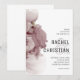 Interesting and modern abstract wedding invitation featuring an alcohol ink design in reds with gold specks, and your personalised text on the right, accented with an oversized outlined ampersand in grey.