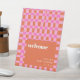 This baby shower welcome sign features a playful pink and orange checkerboard pattern paired with a warm coral accent and clean serif typography. The bold, modern layout makes a cheerful first impression while clearly marking the celebration space. Designed to coordinate beautifully with colorful and contemporary baby shower themes. Personalize the name and date to create a cohesive, inviting detail guests will notice as they arrive.