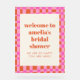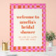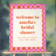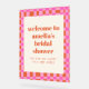 This personalized acrylic bridal shower welcome sign is a cheerful way to greet guests as they arrive and set the tone for the celebration. Featuring bold typography and a playful checkerboard border, it adds a stylish statement to entry tables, easels, or gift areas. Customize the name and event details to match your shower theme or coordinate with the rest of your stationery suite. Perfect for bridal showers, engagement parties, or wedding-related celebrations that favor modern design with personality.