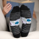 I love these Mona Lisa Christmas Socks! They are soft and very comfortable. The print looks great, on all sides including the most stretched area around my calf.